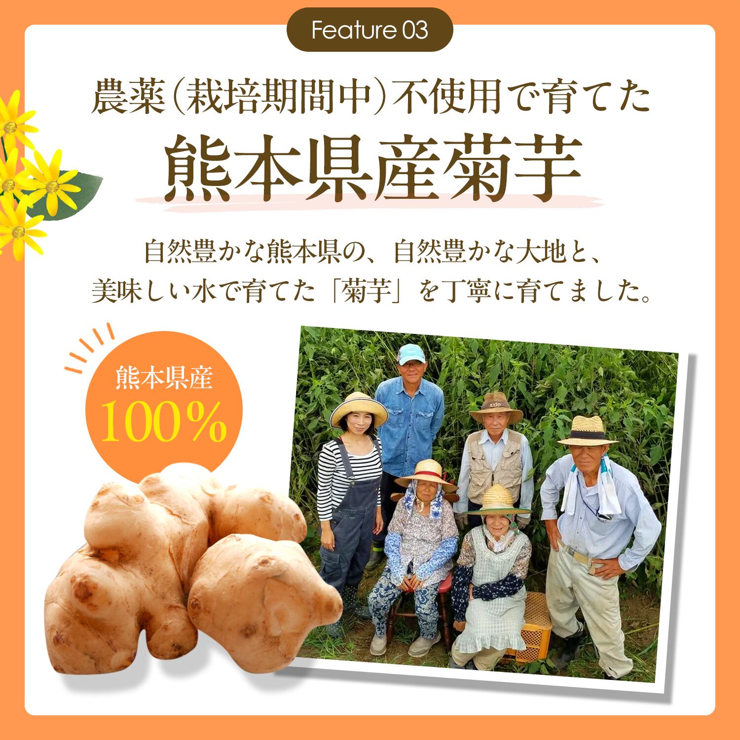 ●原材料名:菊芋(熊本産)、有胞子乳酸菌/セルロース、硬化ナタネ油、カルシウム