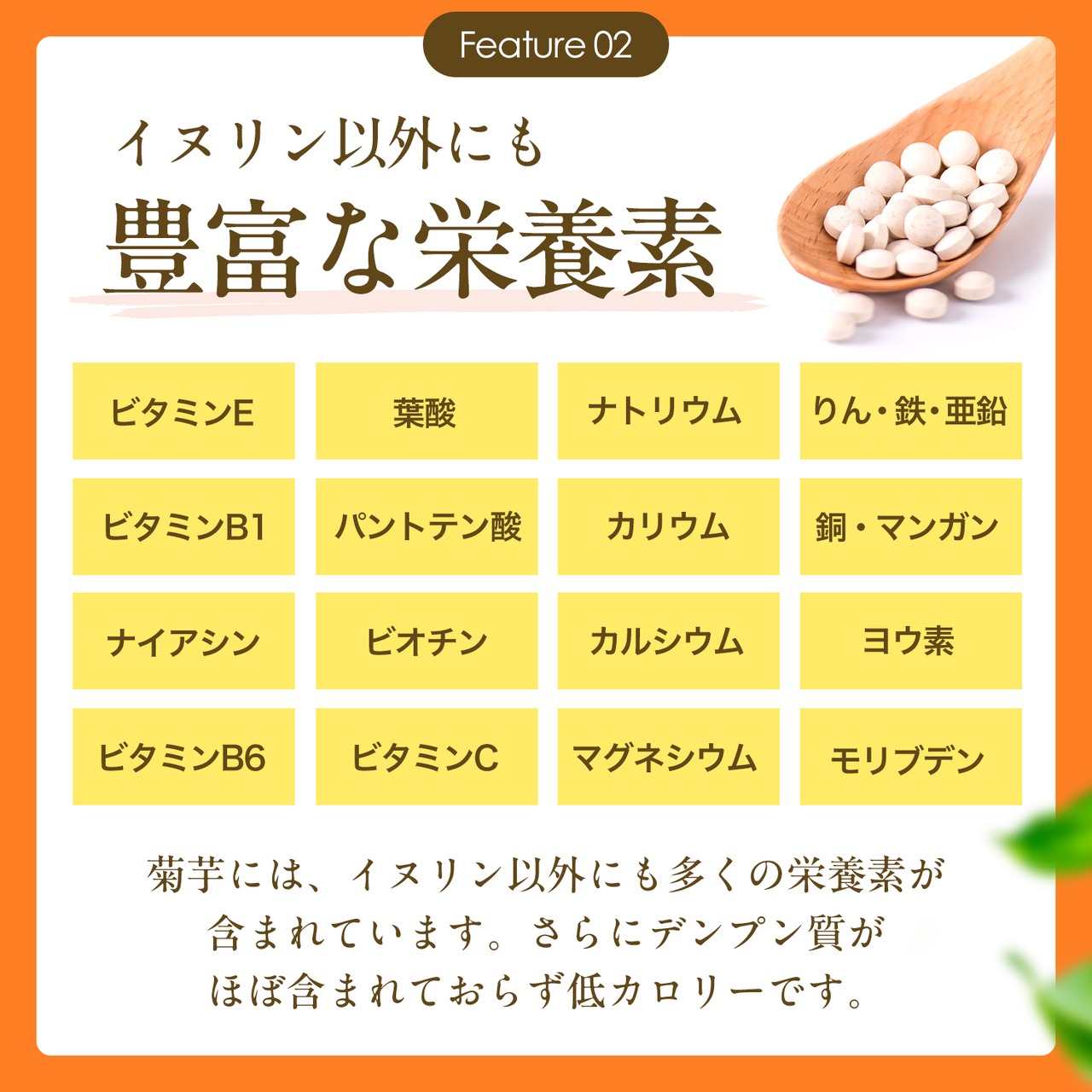 ●原材料名:菊芋(熊本産)、有胞子乳酸菌/セルロース、硬化ナタネ油、カルシウム